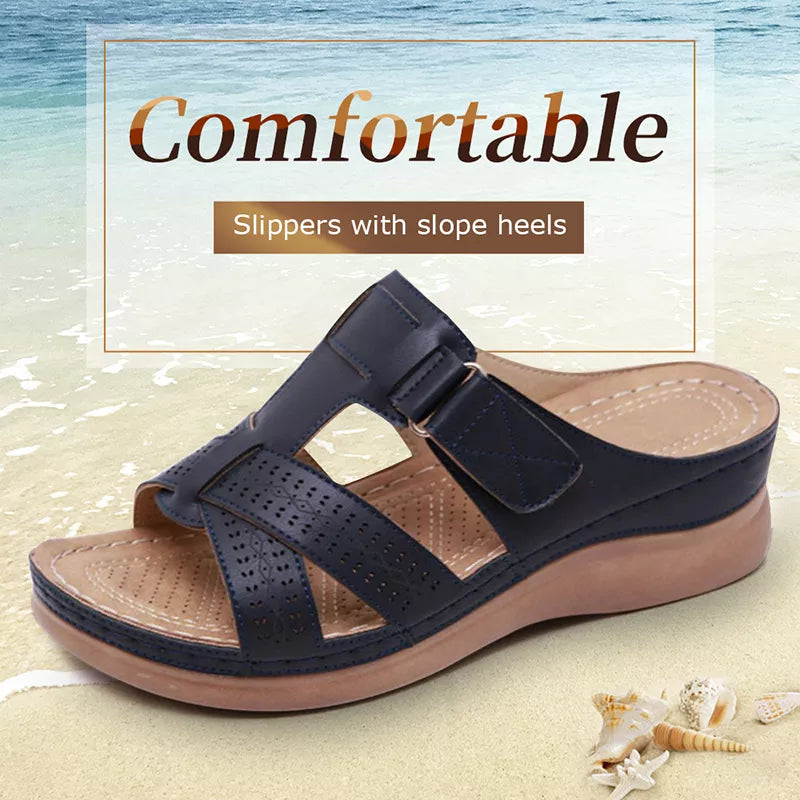 Introducing our Summer Women's Wedge Orthopedic Sandals. This stylish and unique sandal is perfect for any occasion. It features a PU leather upper part, rubber outsole, and a slip-on closure. The heel height is low-medium height. It is fashionable and comfortable, making it the perfect choice for any woman.