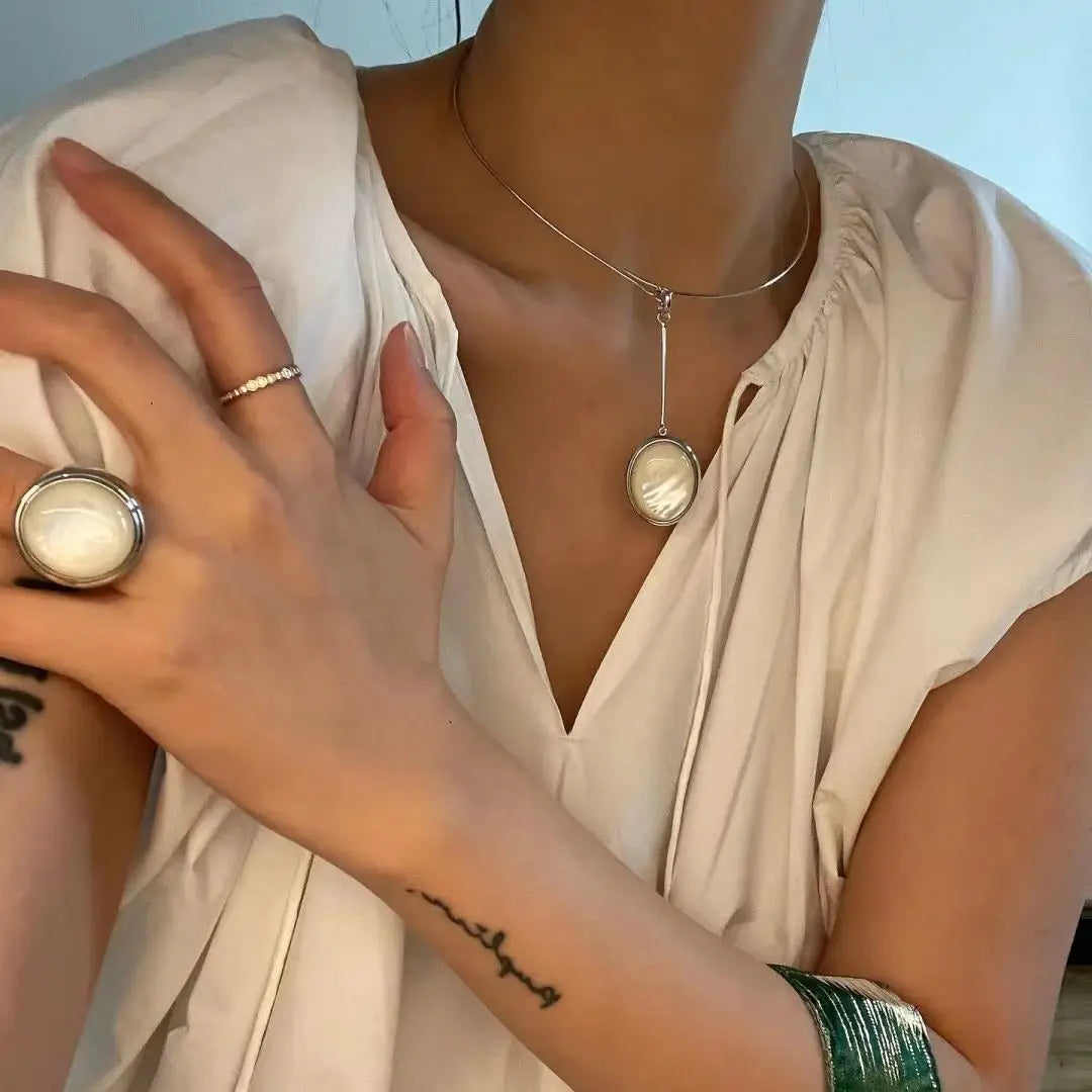 Looking for a versatile piece of jewelry that can elevate any outfit? Look no further than this Natural Shell Stud earrings & Necklace from Modernicities. Made with high-quality metal and stainless steel, this necklace is both durable and stylish. The classic design features an oval-shaped pendant with a natural shell inlay, making it perfect for any occasion.