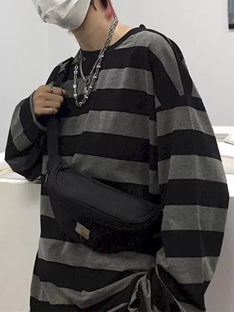 The round neck, long sleeves, color block, and striped design contribute to its oversized, modern urban style. This casual tee is timeless and versatile, with numerous ways to style it. Pair it with a jacket, jeans, shorts, leggings, or a skirt across all seasons - spring, summer, fall, and winter - for a chic look.