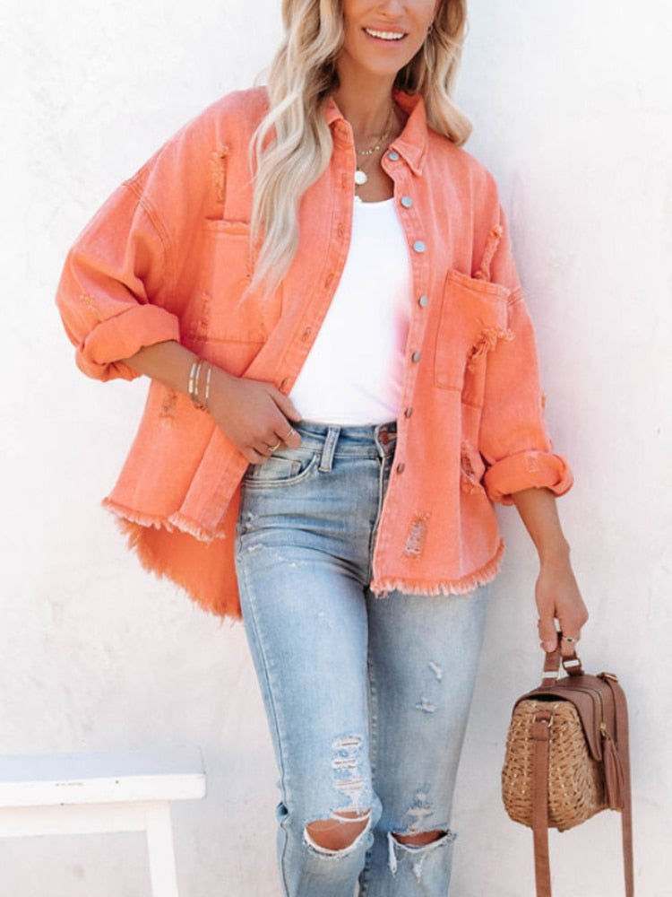 This fashionable denim jacket is incredibly versatile, as it can be effortlessly paired with a wide range of clothing items. Whether it's a tank top, t-shirt, shorts, jeans, casual pants, skinny pants, maxi dress, or skirt, you can create a chic and stylish look with ease.